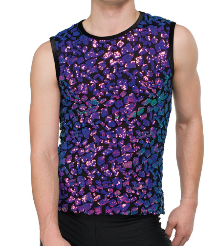 Lined cluster iridescent sequin mesh tank top.